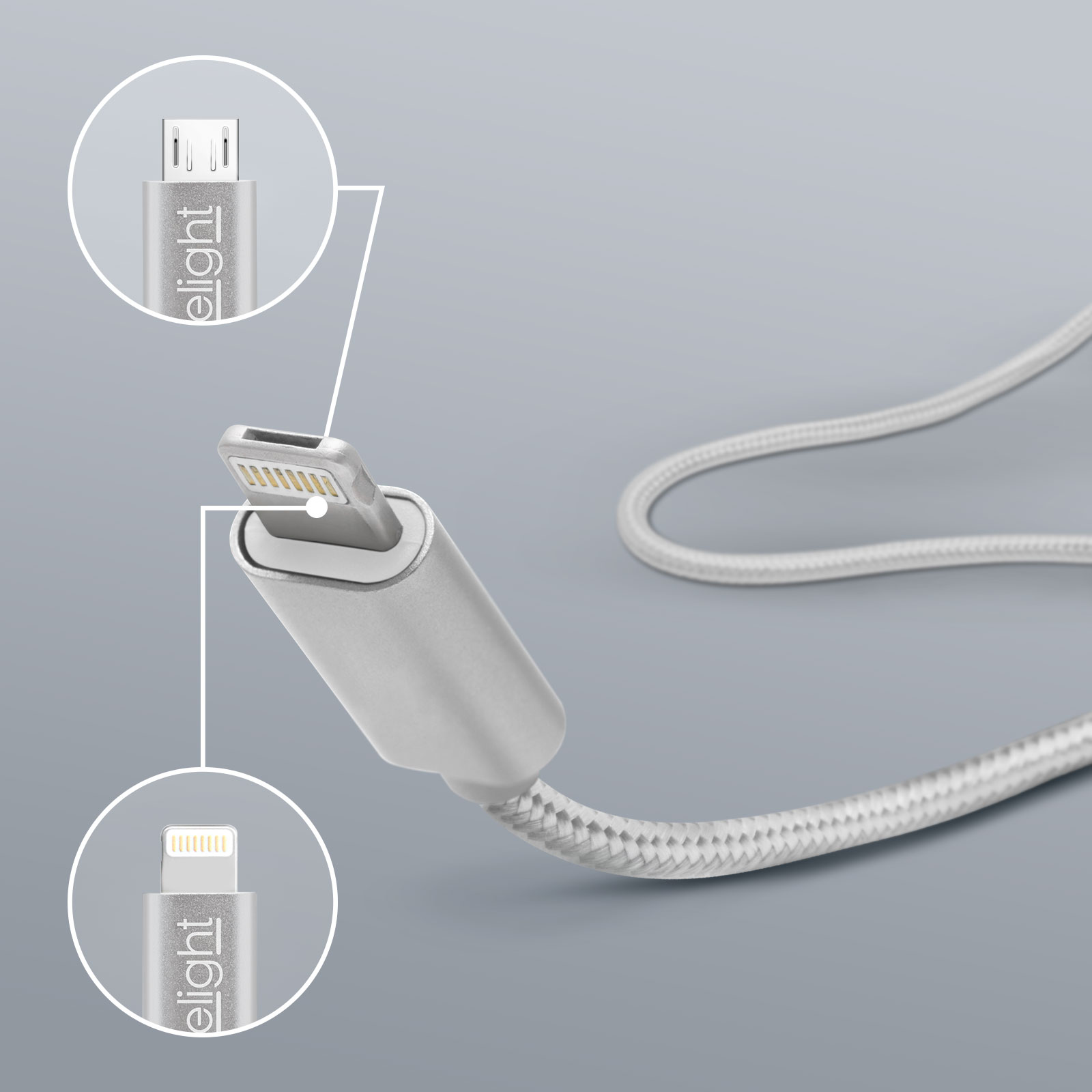 Cablu de date cu înveliş rezistent, cu conexiune hibridă bilaterală! La un capăt conexiune „lightning”, la celălalt capăt Micro USB – oferă posibilitatea încărcării aparatelor prevăzute cu diferite standarde de încărcare. Oferă transfer de date rapid şi sigur între PC, notebook şi iPhone, iPad, Micro USB. Datorită învelişului textil este mult mai rezistent de cât cablurile similare clasice. Ideal pt. încărcarea iPhone, iPad, MicroUSB
